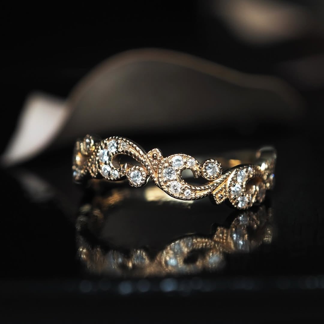 Mille Gothiqueは、古き良き時代の趣を現代の装いに映すリングシリーズです。アンティークジュエリーの質感をかたちだけでなぞるのではなく、素材づくりから仕立てまで丁寧に向き合っております。