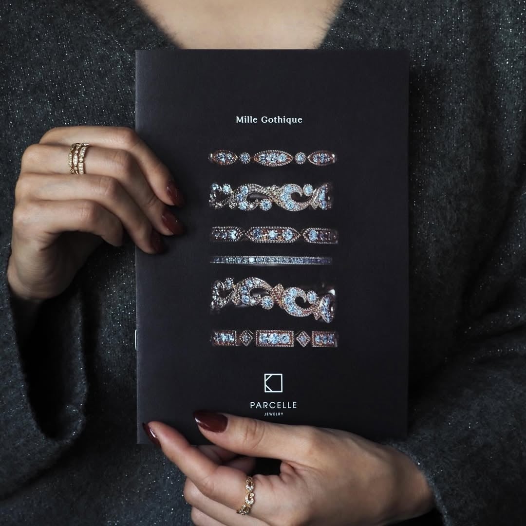 「Mille Gothique(ミルゴシック)」は、ゴシック建築を思わせる意匠と、アール・デコ期の美意識を継承した、パーセル ジュエリーを代表するシリーズのひとつです。細やかな手打ちによるミルが生み出す煌めきと陰影がダイヤモンドを引き立て、静謐な美しさをたたえております。