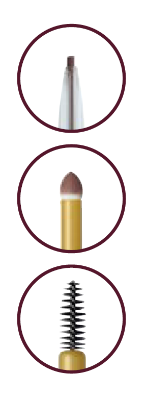 (1)ペンシル :隙間埋めや繊細なラインも描きやすい楕円芯。眉尻まで1本1本描き足せます。