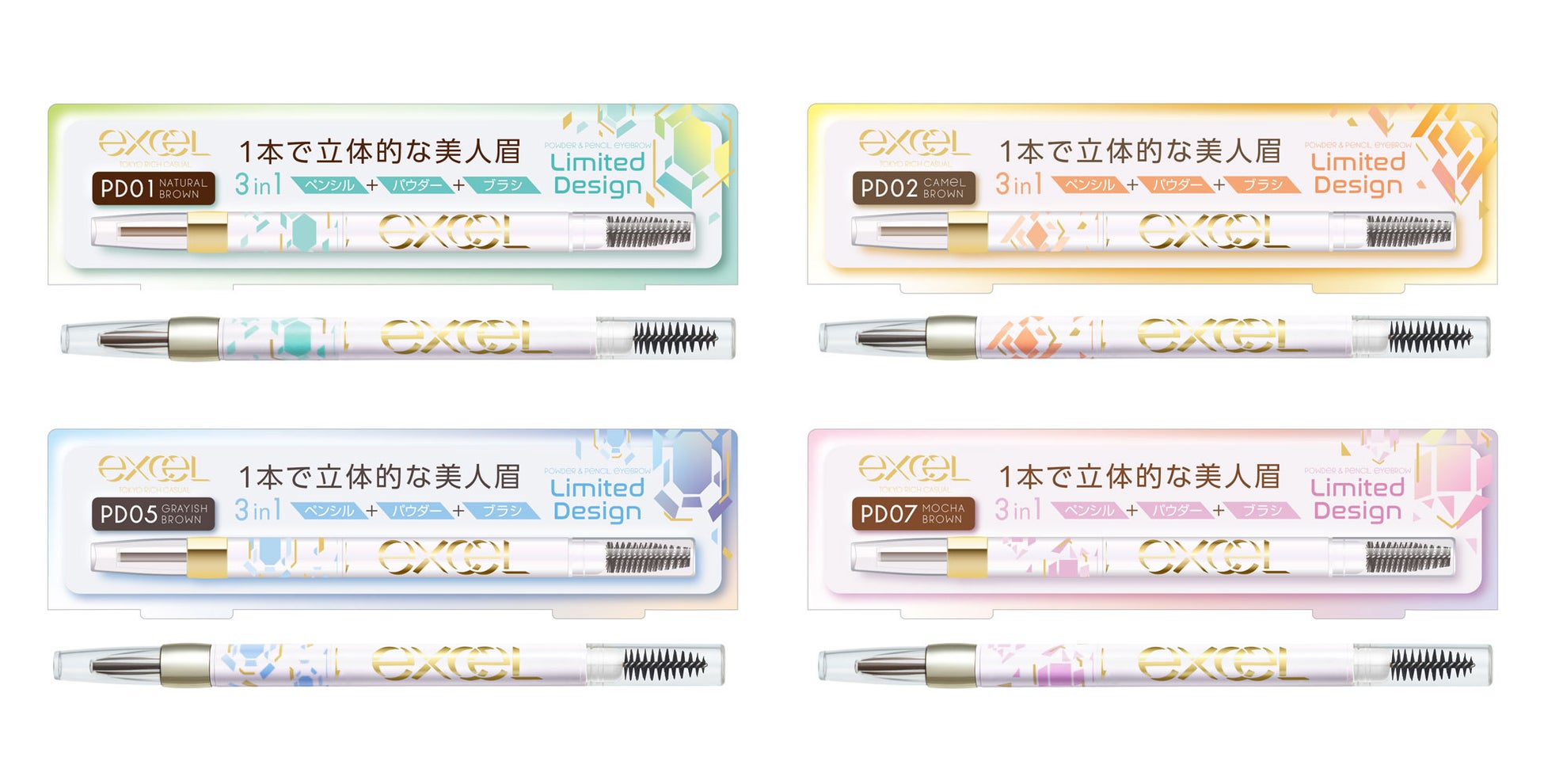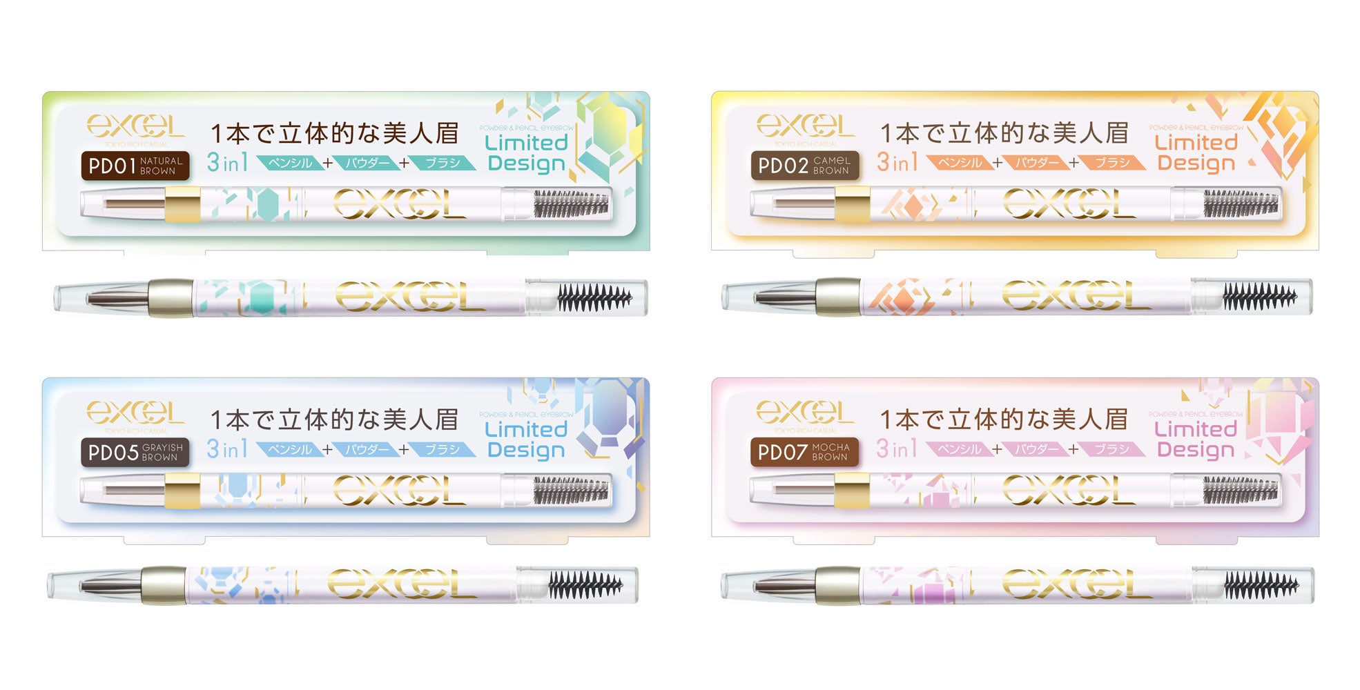 【7月18日】メイクアップブランド『エクセル』から、ペンシル・パウダー・ブラシの3機能を搭載したロングセラー商品「パウダー&ペンシル アイブロウEX」限定デザイン 発売