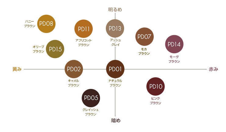 PD05 グレイッシュブラウン :暗めのブラウンヘアや黒髪の方に