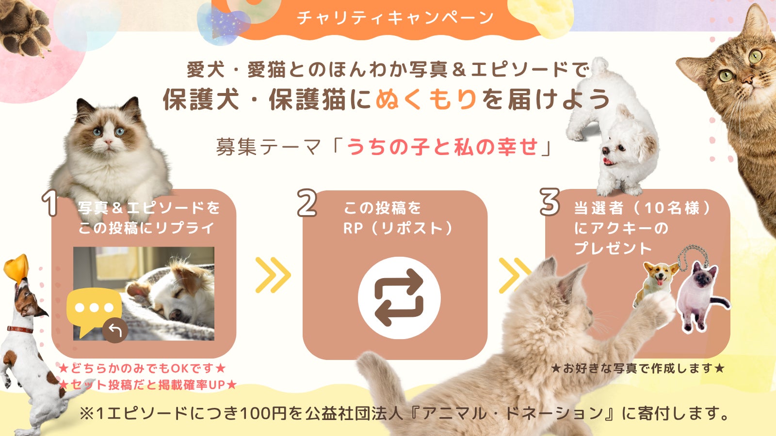 大好きなワンちゃん・ネコちゃんとの思い出を、ほっこりする写真とエピソードでシェアしませんか?あなたの投稿が、保護犬・保護猫たちへの寄付につながります!