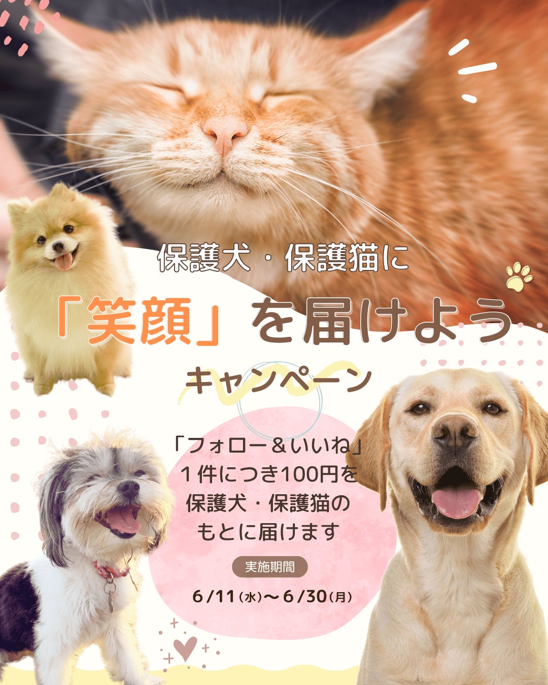 笑顔がつながるシンプルな応援アクション!フォロー&いいねで、保護犬・保護猫たちにぬくもりを届けましょう。