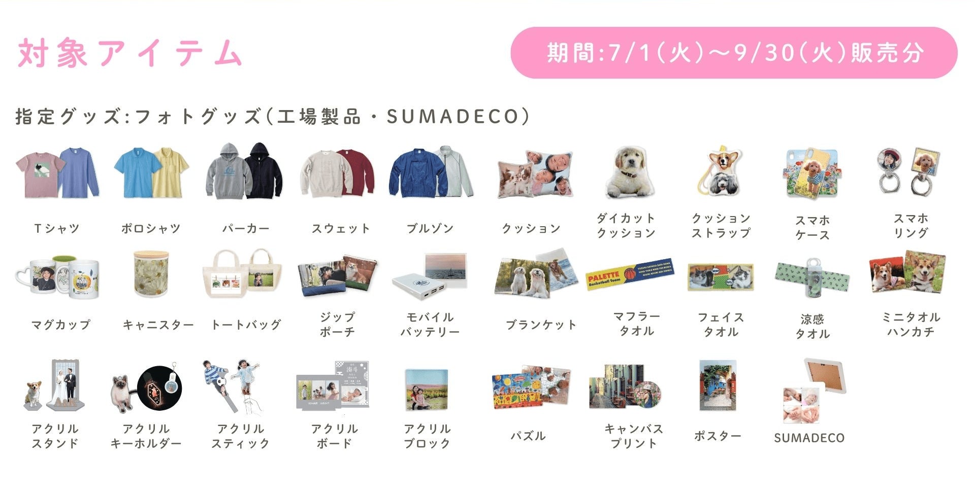 パレットプラザでご注文いただけるフォトグッズ(下記画像ご参照ください)