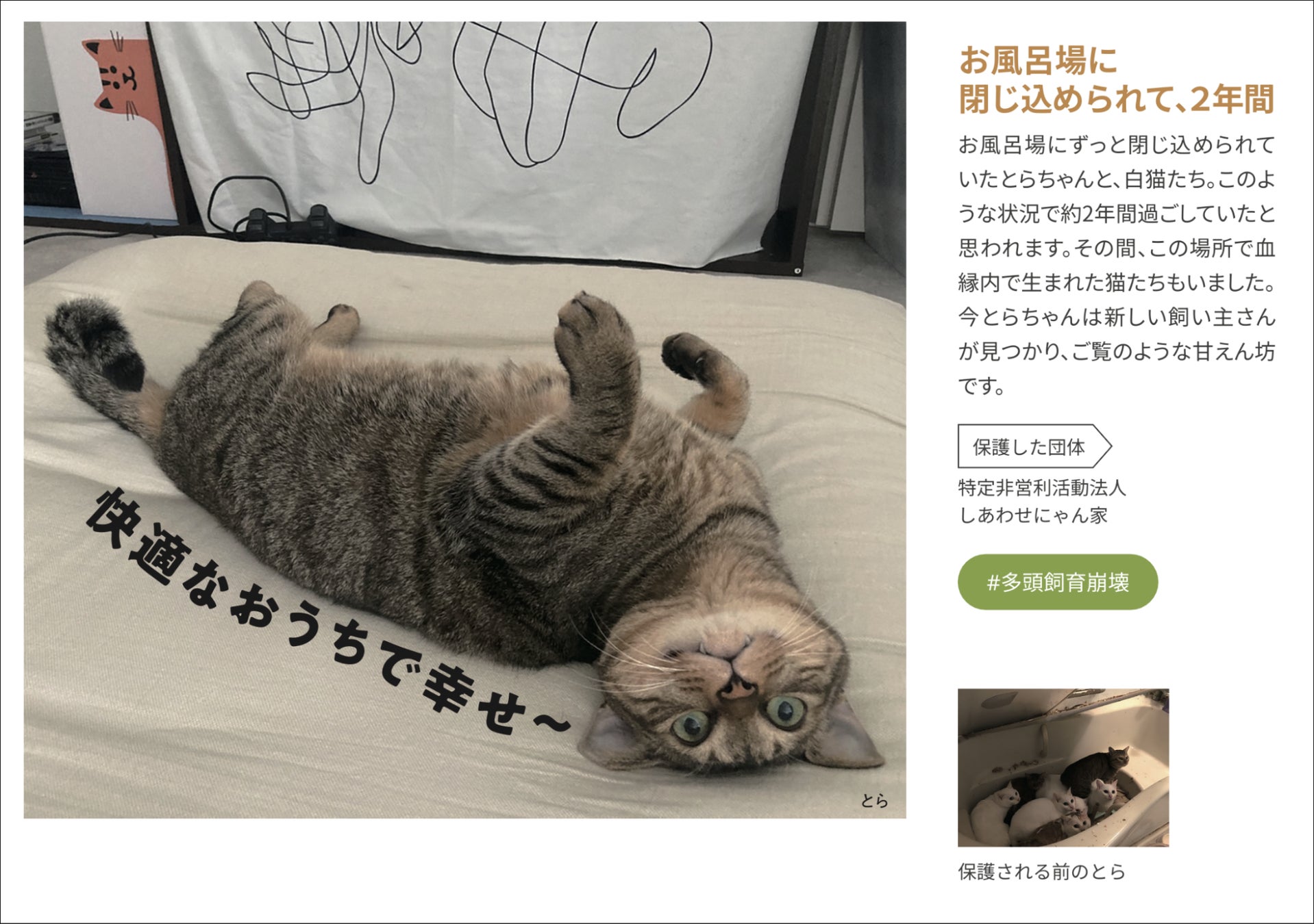 保護犬・保護猫と人との出会い、そのしあわせな記憶を写真とともに届ける参加型コンテンツとして、プロジェクトの想いや仕組みをわかりやすく紹介しています。