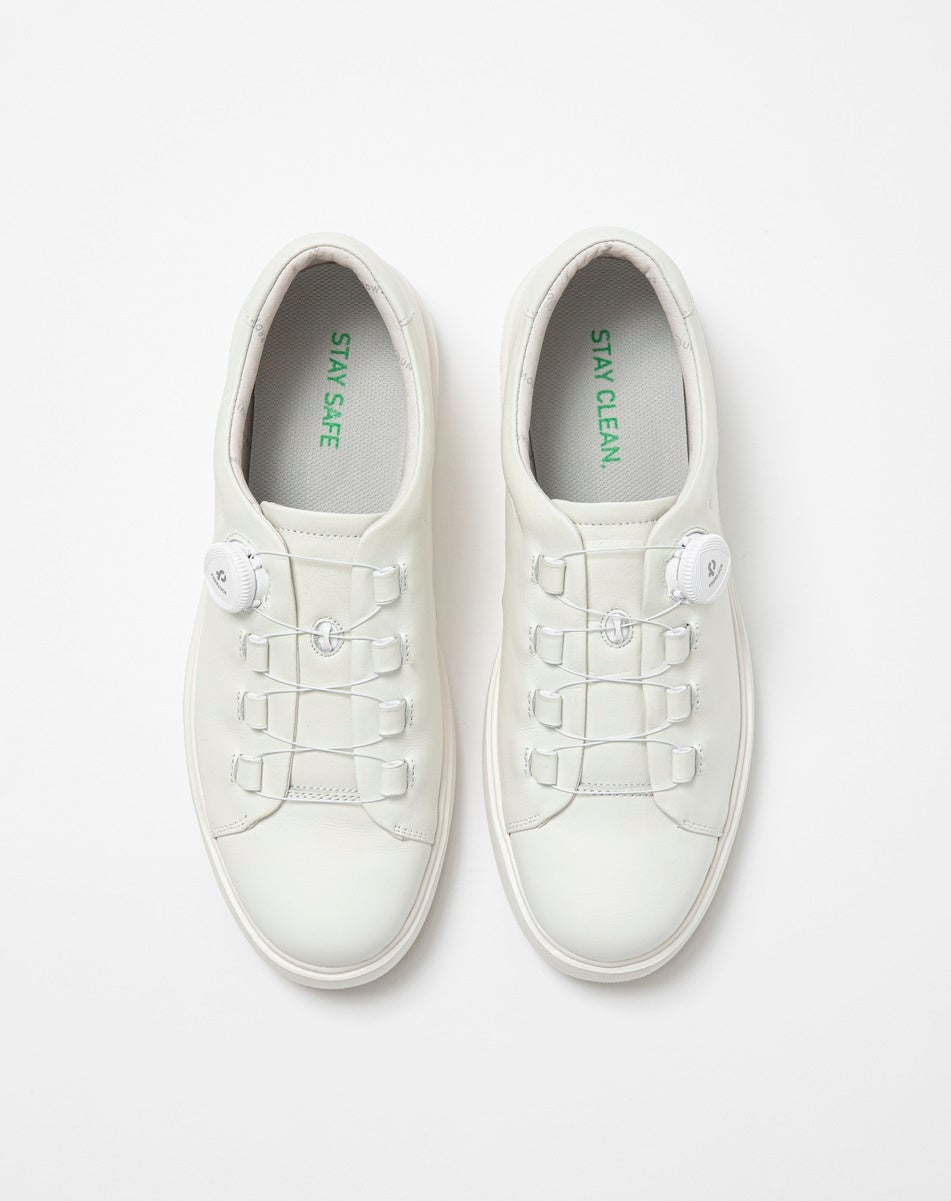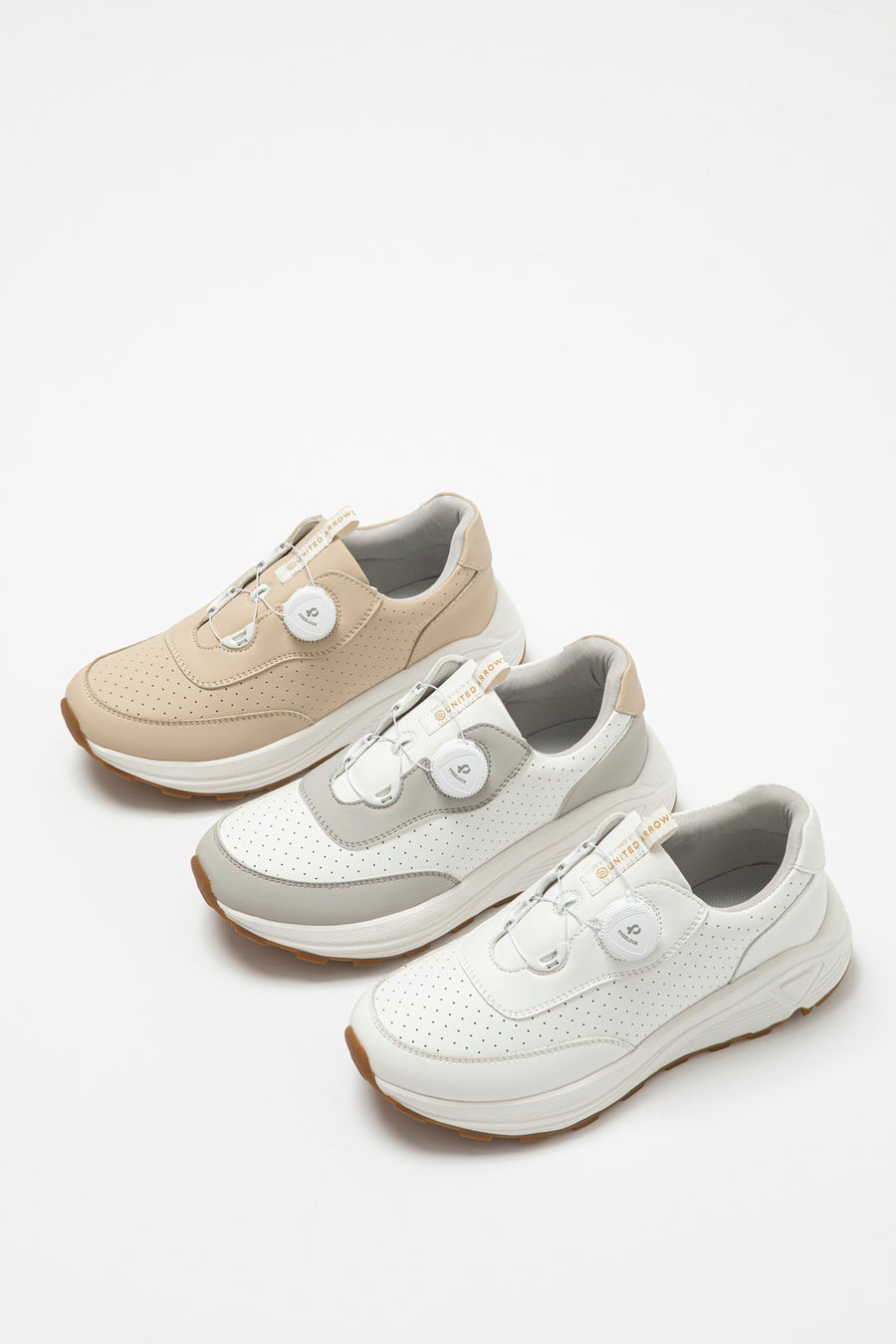 ダイヤルロックで着脱できるスニーカータイプ。程良い厚底ソールがクッションになり、足への衝撃を和らげてくれます。アウトソールには「UNITED ARROWS」のUとAをデザイン化したラバー素材の底ゴムを使用し、滑りにくくグリップ力を高める工夫を施しました。仕事用だけでなく、日常用としても活躍してくれるデザインです。