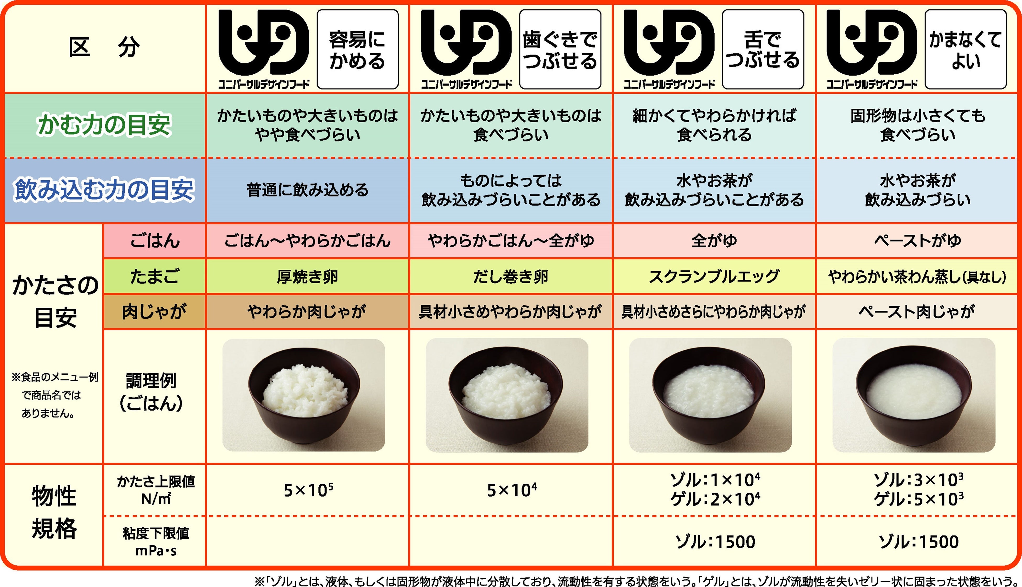 日本介護食品協議会が定めたユニバーサルデザインフード(※参考資料)の4つの区分のうち、