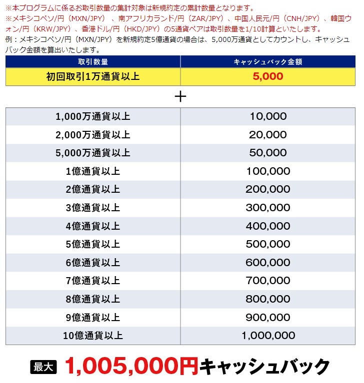 ~新規口座開設とお取引で最大1,005,000円キャッシュバック~