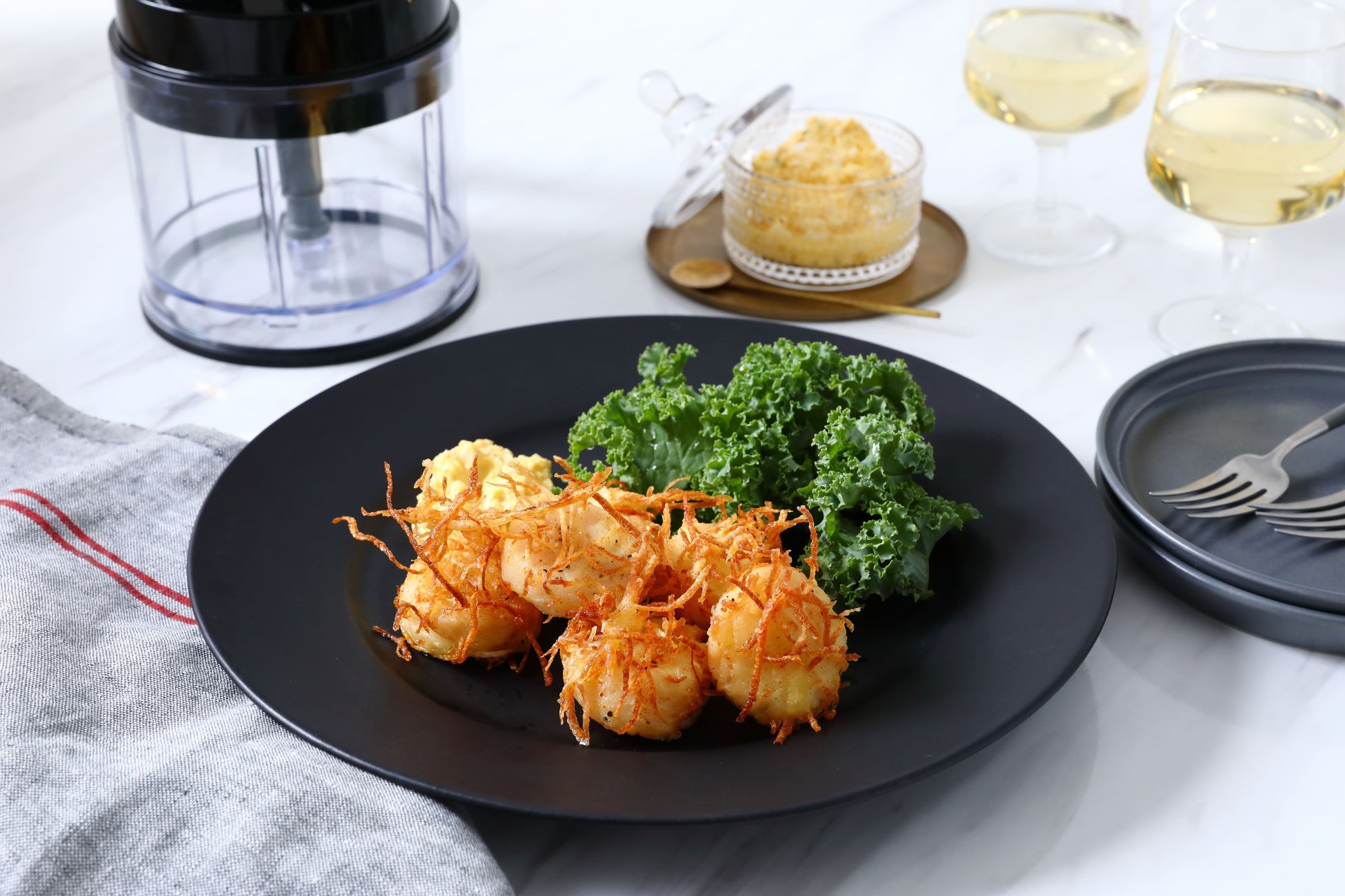 「マルチクイック 7(MQ7035XBG)」には、便利な500mlチョッパーが付属。すりおろしに便利な「おろしディスク※4」を使えば、ちょっと面倒な大根おろしやしょうが、にんにく、りんごのすりおろしもあっという間に完成します。さらに、刃を変えればみじん切りに便利なチョッパーとしても活躍します。また、「マルチクイック 7(MQ7075XB)」では、「スライス」「せん切り(太・細)」「こねる」に対応した「フードプロセッサー(1.5l)※5」が付属しており、ブレンダー本体の「つぶす」「混ぜる」機能と、「泡立てる」「かき混ぜる」機能のマルチウィスクビーターを組み合わせることで、お菓子作りも食事も思い通りに実現。続けて使うほどに自信が深まり、料理のレパートリーが無限に広がります。
