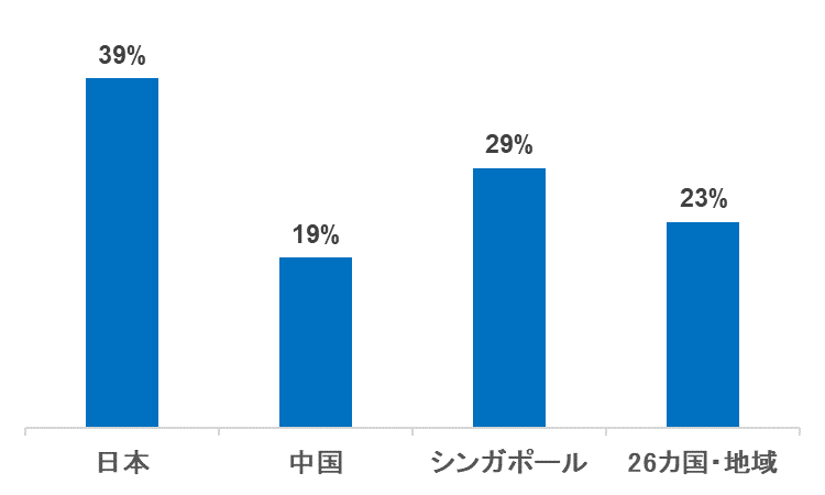 調査の結果、世界的に社会人がスキルアップに前向きであることが浮き彫りとなりました。その一方で、日本の雇用主への調査では、自社のスキル不足について「非常に懸念している」と回答した企業が39%と、他国と比較して高い数値となり、中国(19%)、シンガポール(29%)、26カ国・地域(23%)と比較しても日本のスキル不足が顕著であることが浮き彫りとなりました。(図)