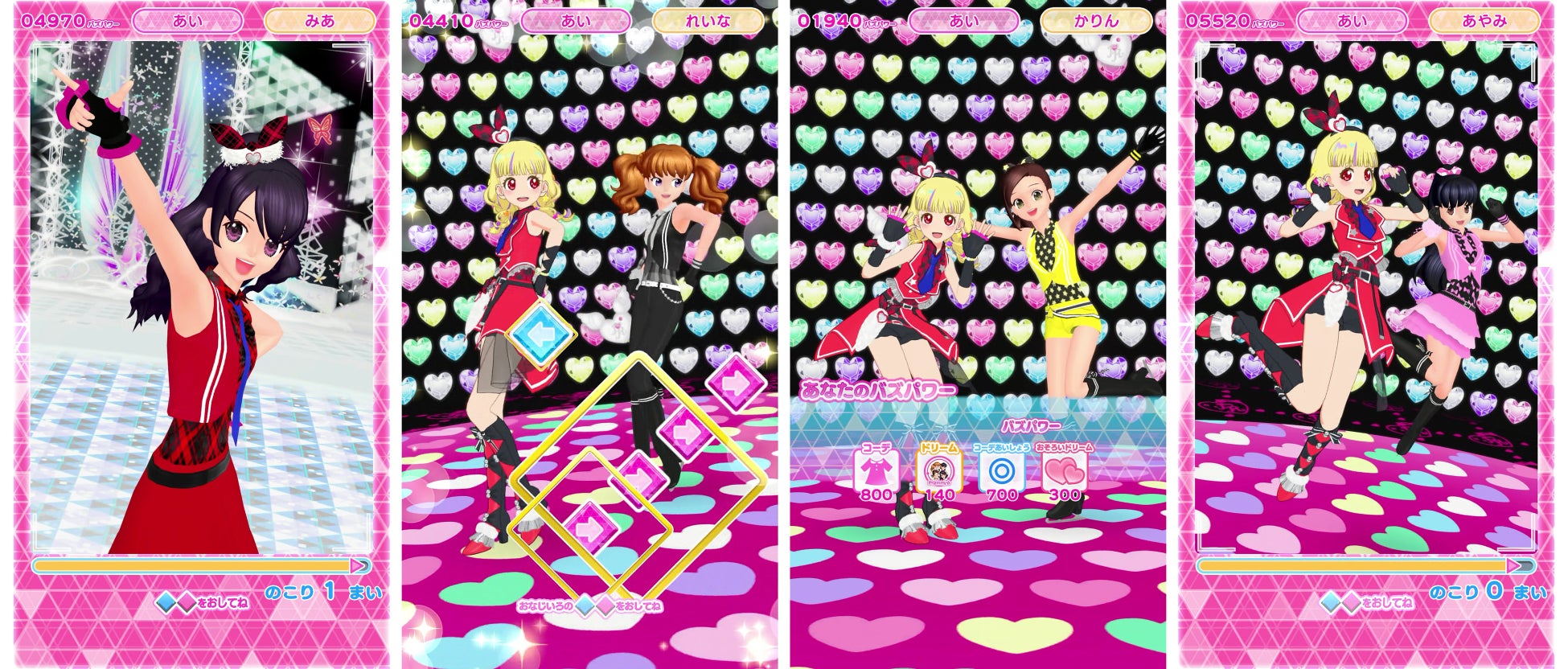 2月6日(木)から稼動する「6だん」では、「アイプリひろば」に『プリティーリズム・ディアマイフューチャー』の主人公チーム「Prizmmy☆」の4人(「みあ」、「れいな」、「かりん」、「あやみ」)が登場します。『プリティーリズム・ディアマイフューチャー』は、2012年4月から1年間テレビアニメとアミューズメントゲームが展開されていた作品で、4人のキャラクターは当時のゲームCGと同じ姿となっています。当時のビジュアルそのままに、自分の「マイキャラ」と一緒に「ミニライブ」をしたり「パシャリング」で写真撮影をしたりといったゲームを楽しむことができます。