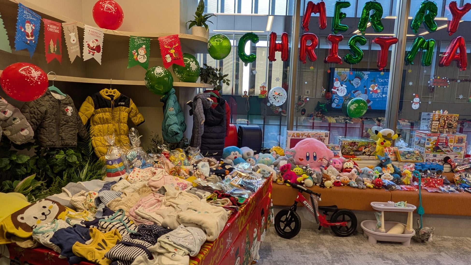 当社には、働くママ社員が多く在籍しています。 子どもたちは毎年クリスマスに親からプレゼントをもらいますが、子どもの成長とともに翌年には遊ばれなくなってしまうものも少なくありません。 ―まだ使えるのに捨てるのはもったいない、誰かに使ってほしい―そんな思いから 「クリスマス前に社員の子供たちが使わなくなったおもちゃを持ち寄り、年下の子どもたちへプレゼントとしてつないでいこう」という声が社内からあがり、3年前から「おもちゃ継承クリスマス」を始めました。 使わなくなったおもちゃを同僚の子どもたちへ贈ることで、“捨てる”のではなく“大切に使い続ける”という選択が生まれ、贈る側も受け取る側も笑顔になる取り組みとなっています。 本企画は、社員同士のつながりを育むと同時に、サステナブルな社内エコイベントとして毎年継続されています。