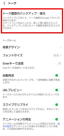 2.「トーク履歴のバックアップ・復元」をタップします。