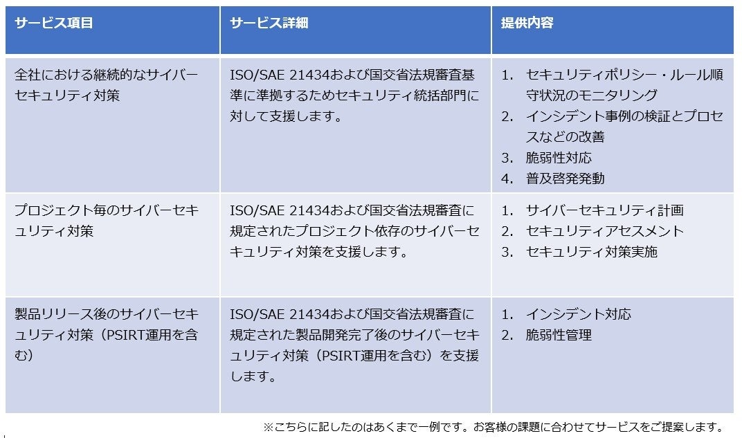 「CASE*1」の時代に、自動車サイバーセキュリティ対策は喫緊の課題となってきます。そこで、自動車開発のノウハウを有するパーソルR&D株式会社(以下「パーソルR&D」)との協働チームは、自動車OEMもしくはサプライヤー企業に対して、国土交通省が定める安全基準への適合や「ISO/SAE 21434*4」に準拠したCSMS/SUMSのセキュリティレベルを維持・改善する支援サービスの提供を開始します。