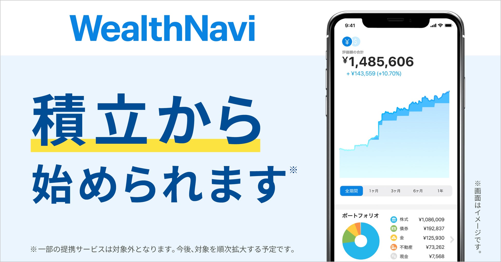 今後も、預かり資産・運用者数 国内No.1ロボアドバイザー(※1)「WealthNavi」等の提供を通じて、働く世代のより豊かな人生をサポートできるよう、サービスの改善を重ねてまいります。