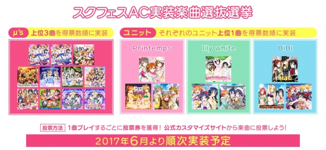 「ぼくらが決める!第1回スクフェスAC実装楽曲選抜選挙」について詳しくはこちら