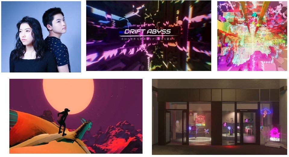 『心と身体を仮想空間で動かす感動体験』展はヘッドマウントディスプレイを装着し、自動生成される無限の大地(DriftAbyss)を飛行するVR作品です。360°のオープンワールドで浮遊すると、自分の存在や身骨を、ありありと感じ取れる感覚に陥ります。深く息を吸い、手足の先まで目いっぱい伸ばし、鳥のように空を飛ぶ解放感に身を任せるかもしれません。仮想空間内の美しい景色を自由に撮影し、記念写真をお持ち帰りいただくことも可能です。