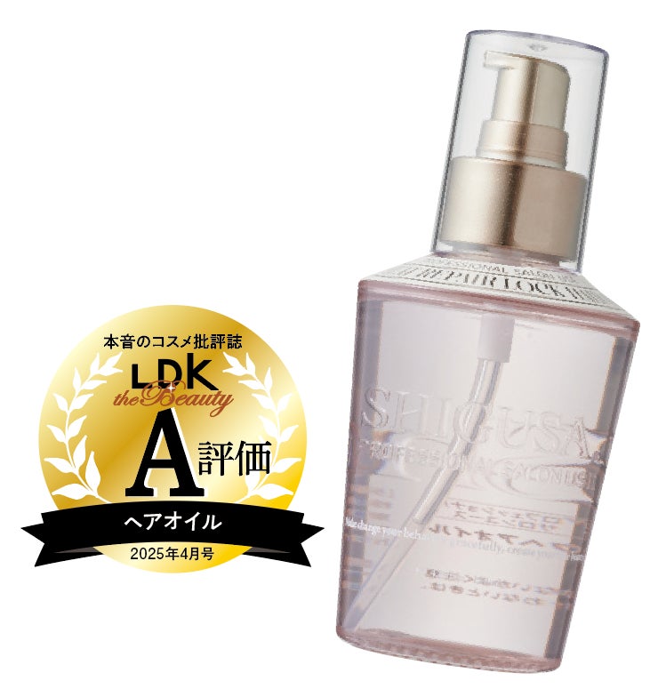 ケラチンなどの補修成分をはじめ、ナメコ由来のうるおい成分などをバランスよく配合。さらに光沢イメージを操るパールエキスや白金も配合されています。ドライ後は髪がサラサラになって、指通りよくまとまりました。「髪がやわらかくなって、軽さが出るのもいいですね」とプロも評価。なめらかに伸びてベタつきもなく、グレープの香りも好印象。オイルのU1800円カテゴリーの第1位に輝きました。