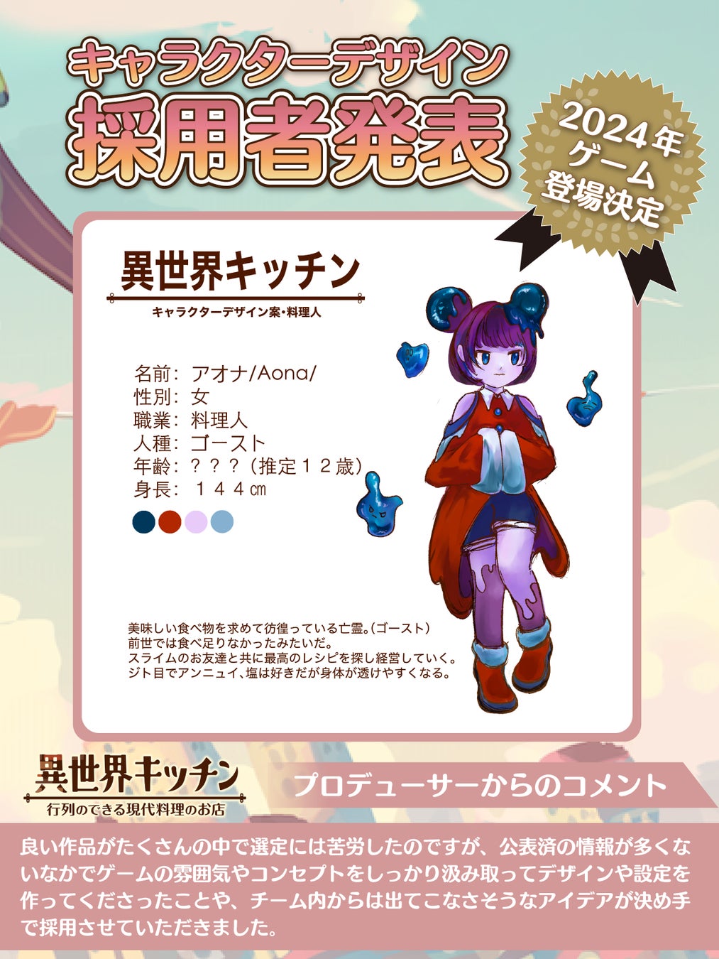 ※採用されたキャラクターは運営チームにより新規書き起こしを行う為、変更及び修正が加わる場合がございますので予めご了承ください。