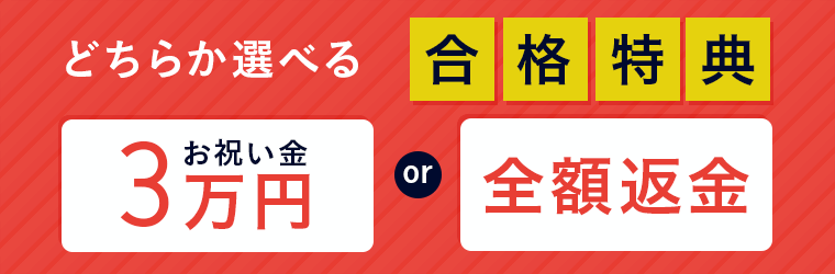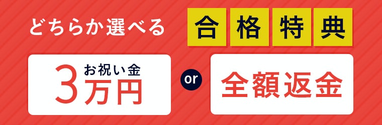 対象の社労士試験講座をお申込みいただいた方が,合格目標年度の社労士試験に合格された場合,合格特典がございます。