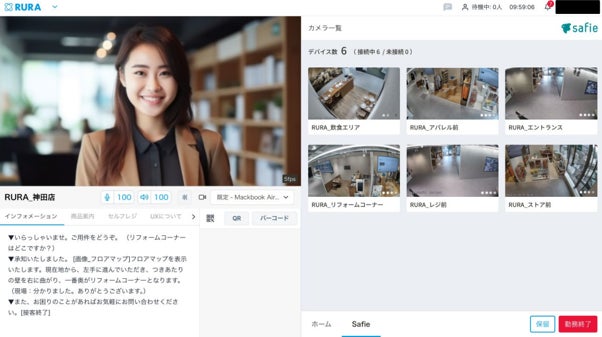 ルネサンスでは「RURA(SF)」の設置されている周辺エリアをクラウドカメラ「Safie One」で撮影しています。オペレーターは接客時の画面で「RURA(SF)」とセーフィーのカメラで撮影した映像を一括して閲覧可能です。