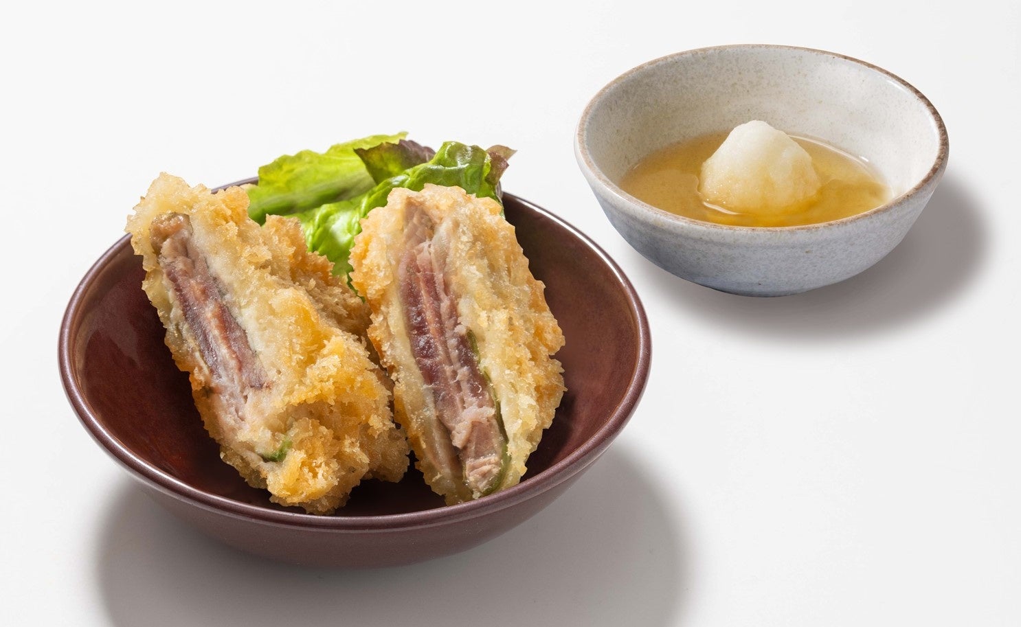 旬の鰹に梅と大葉を挟み、サクっと揚げた贅沢な一品。梅と大葉がアクセントになった、風味豊かで軽やかな食感の「鰹の梅はさみ揚げ」は、和風出汁のつゆと大根おろしでさっぱりとお楽しみいただけます。素材の味を存分に楽しむなら、お塩もおすすめ。今だけの美味しさを、ぜひ大戸屋で。