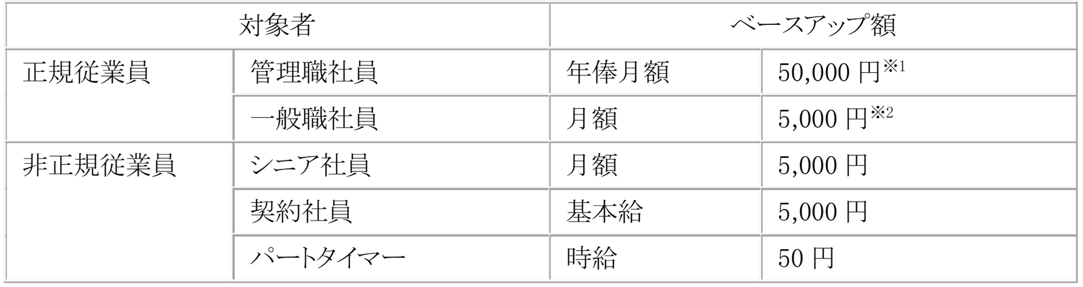 ※1 管理職社員のベースアップ額には、近年の一般職社員のベースアップ実施による報酬水準との差額調整分が含まれます。