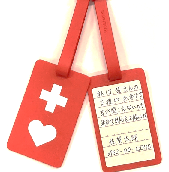 佐賀県では、外見からは、援助や配慮を必要としていることが分かりづらい方等が、周囲の方々に配慮を必要としていることを知らせることで、援助を得やすくするヘルプマークを、2018年7月から導入しています。