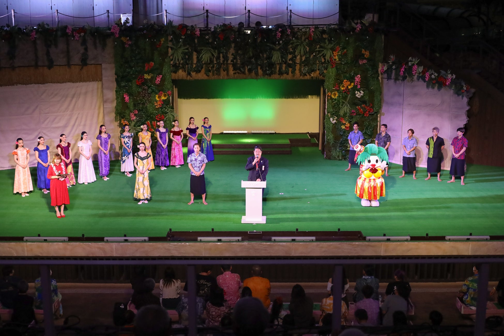 イベント冒頭では、当社社長の関根より、お客様へ感謝の言葉や60年目を迎える思いを述べました。「新しいハワイアンズに向かうスタートの年として、過去を振り返りつつ、未来を見据え、これからもお客様に支持され、100年企業となれるように着実に歩みを進めたいと思います。」と、「ハワイアンズ還暦祭」に込めた思いを語りました。