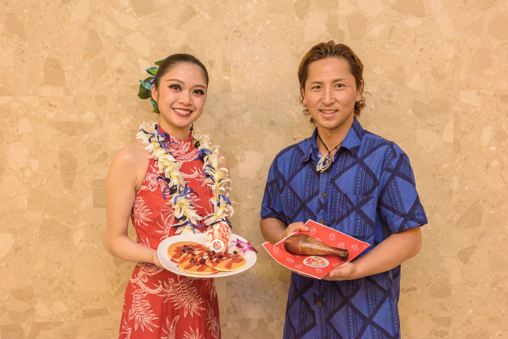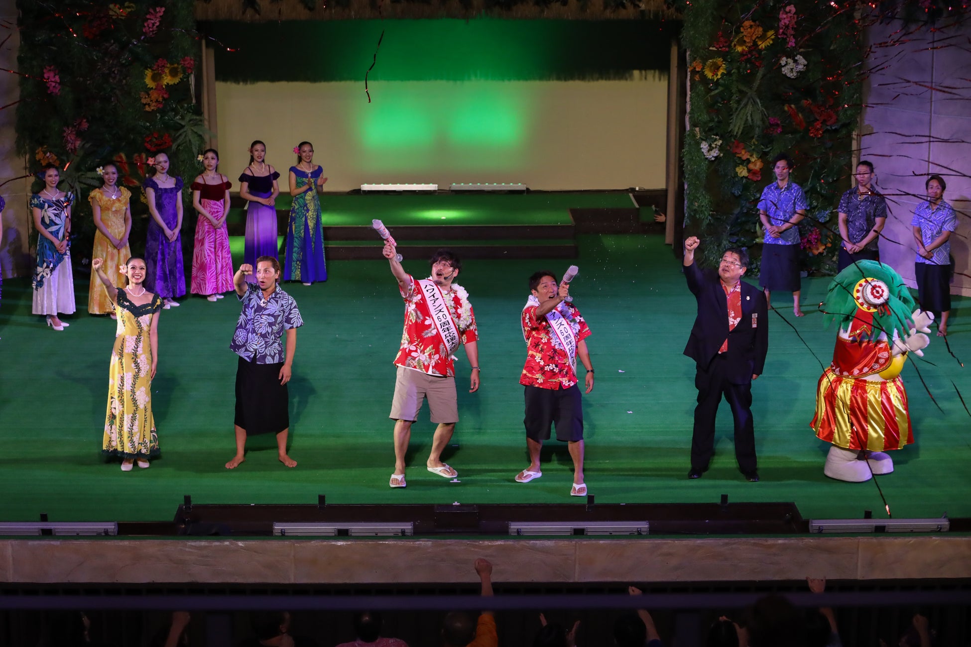 “ハワイアンズ還暦祭”スタートセレモニー応援大使の「アルコ&ピース」が、フラガールらとお祝い!