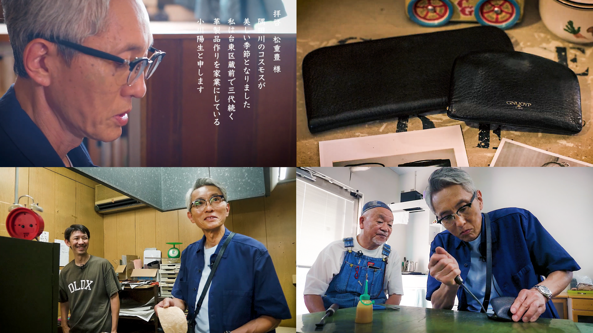 第5弾では、株式会社チェリー(所在地:東京都墨田区、代表取締役:林 晃司)が運営するレザーブランド「GNUOYP(ニュピ)」の製造工場に、俳優・松重豊が訪問。がまぐち一筋50年の職人とのタッグで生み出す、希少な極薄の「がまぐち革財布」の魅力に迫ります。