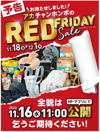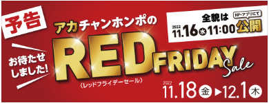 【予告】アカチャンホンポのブラックフライデー その名も『レッドフライデー』11月18日(金)スタート!