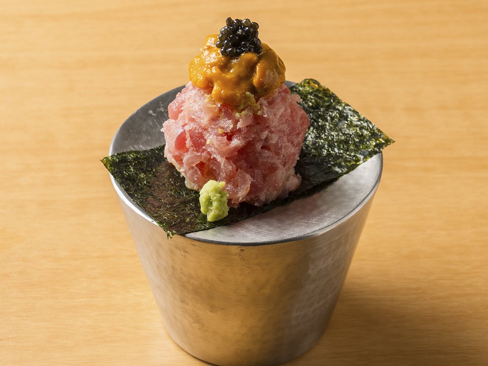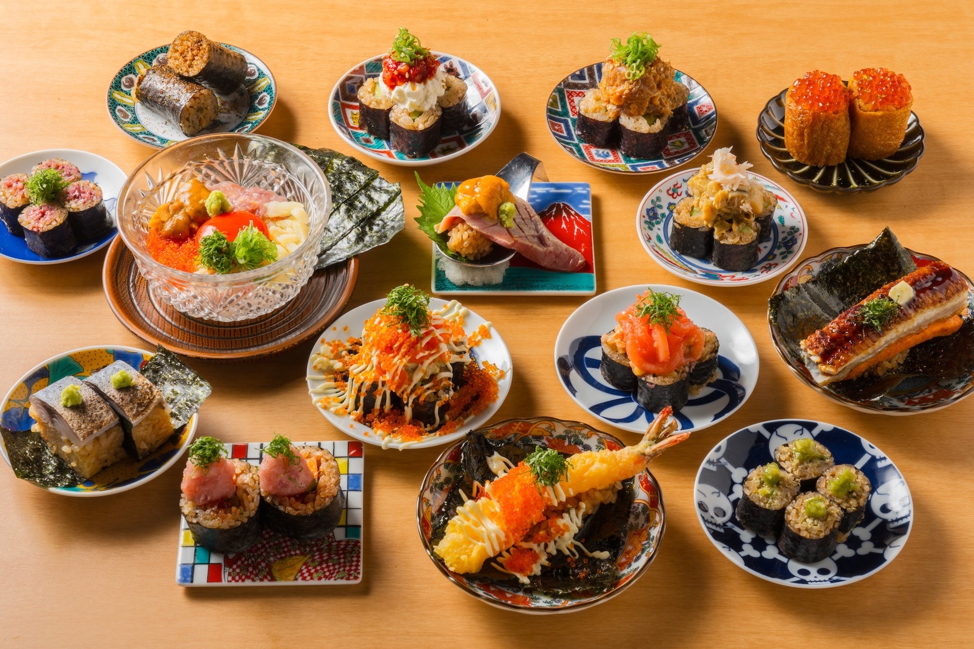 豪華食材をふんだんに使用し贅沢を極めた「極み寿司」や、思わずお酒が進む個性的な具材を合わせたつまみにも〆にもなるバラエティ豊かな「あて巻き寿司」をご用意しました。厳選したブランド米を使用し、にのやオリジナルの赤酢を合わせたこだわりのシャリとともにお楽しみいただきます。1皿が少量でリーズナブルなため、おひとり様でもご注文いただきやすく、グループでご来店の際は、様々な種類をシェアすることができます。