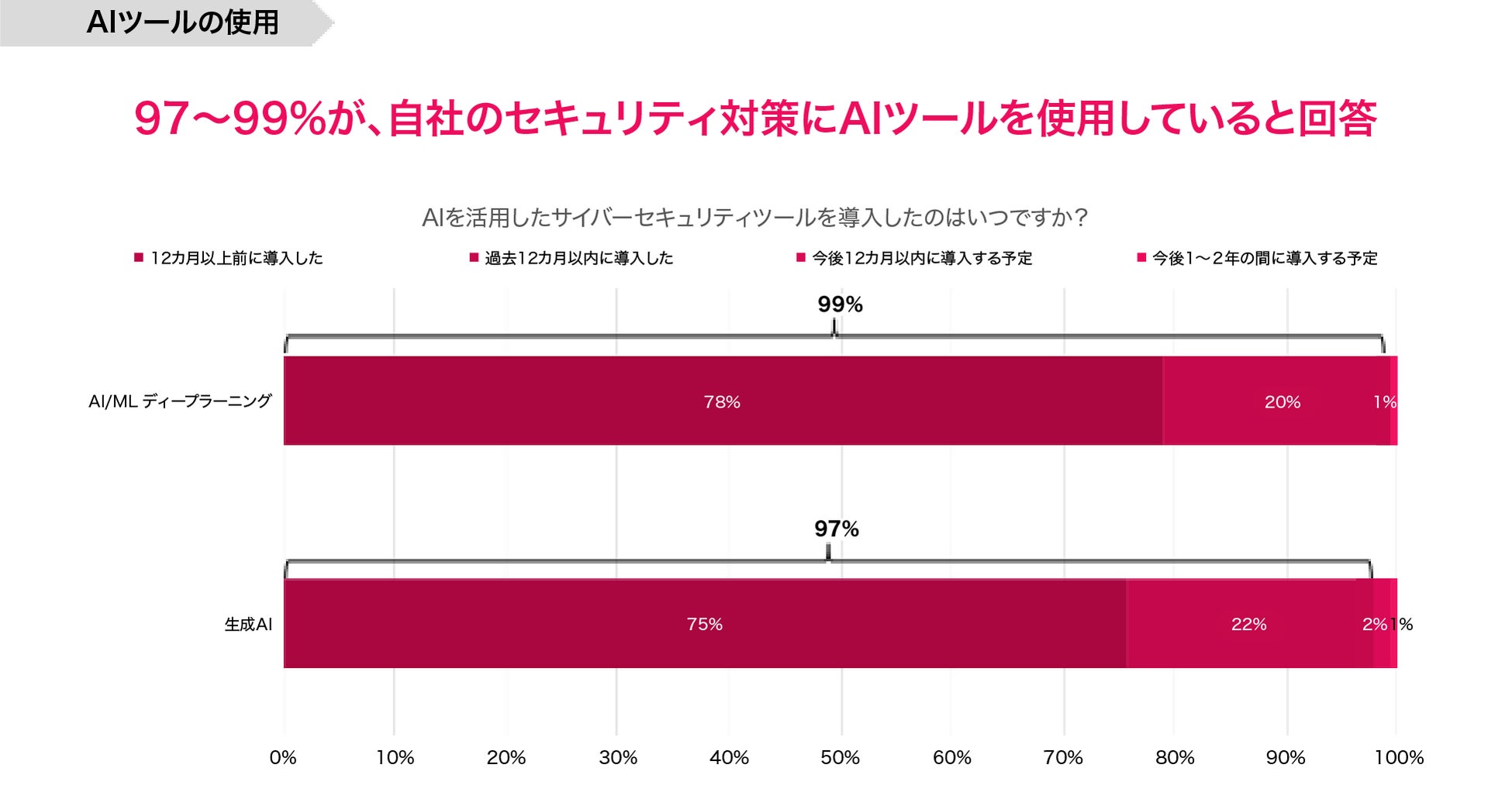 組織のうち97~99%がAIを活用したツールを利用。包括的なセキュリティ戦略のために生成AIへと大きくシフトしている