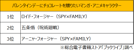 バレンタインにチョコを「贈りたい」「贈られたい」キャラ両方にアーニャ(SPY×FAMILY)と五条悟(呪術廻戦)がラインナップ!