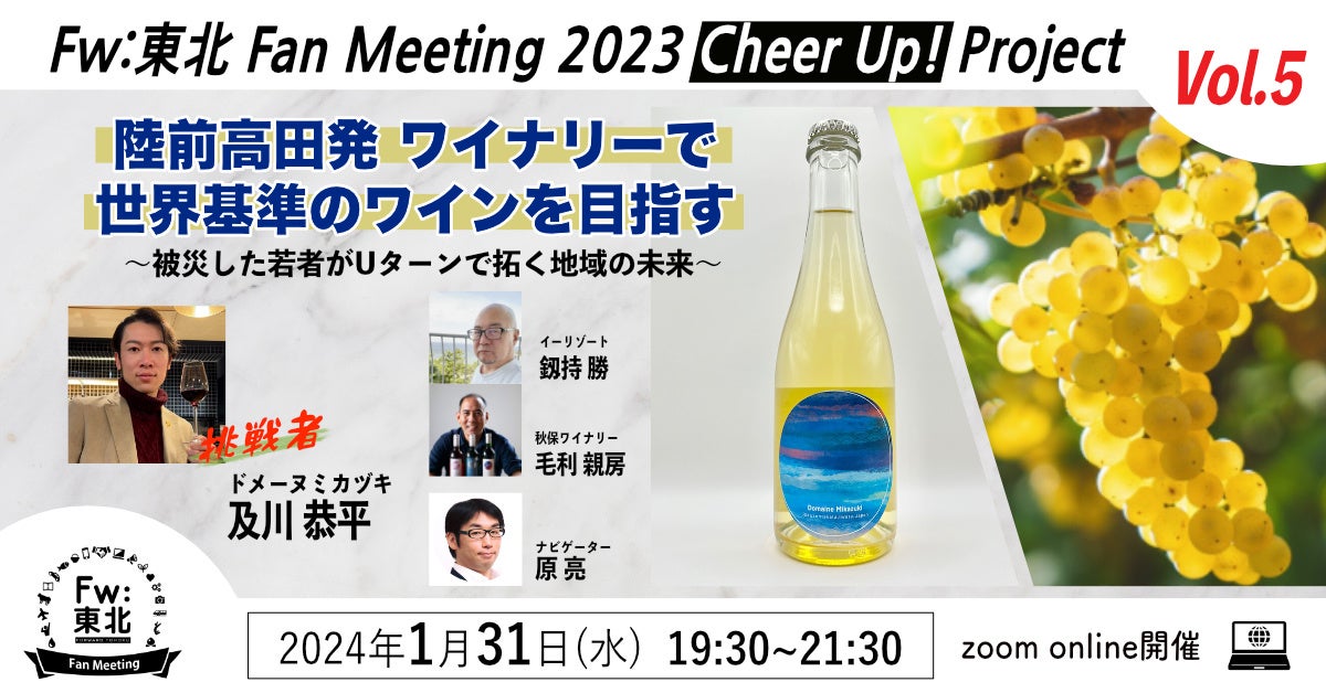 1月31日は、Cheer Up! Project Vol.5として、「陸前高田発 ワイナリーで世界基準のワインの目指す~被災した若者がUターンで拓く地域の未来」オンラインイベントを開催します。