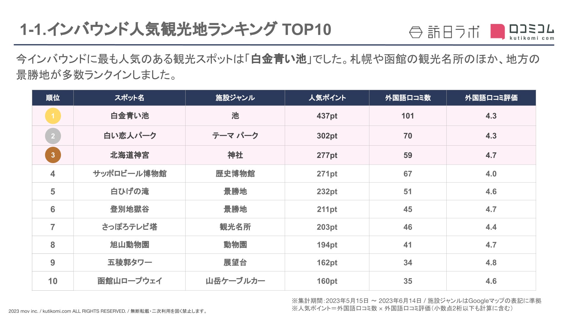 【独自調査】インバウンド人気観光地ランキング北海道編:コロナ後 最新の訪日客の支持を集めたスポットTOP10を発表 #インバウンドMEO