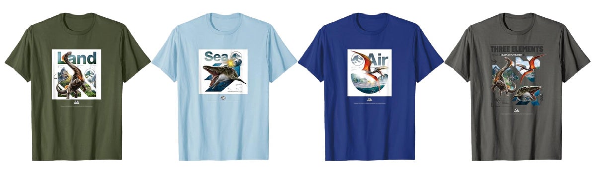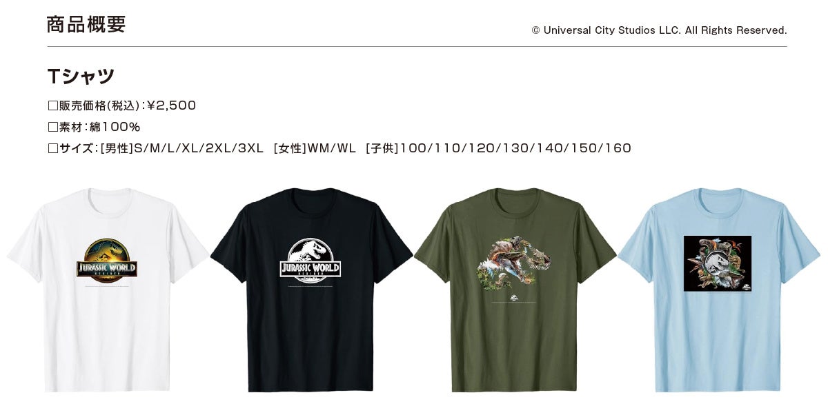 本商品は、最新作『ジュラシック・ワールド/復活の大地』の8月8日(金)公開を記念して登場する、公式デザインTシャツコレクションです。“陸・海・空”を舞台に躍動する恐竜たちをモチーフに、迫力あるビジュアルやロゴをあしらったデザインを採用しました。