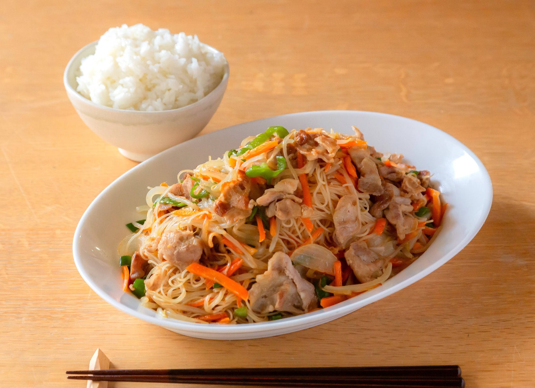 「おかず焼ビーフン」はフライパンで一度に調理するのが大変な家族分の大量の野菜を、4分蒸し焼きするだけで調理ができます。調理の負担をかけずに栄養バランスよい1品が作れます。