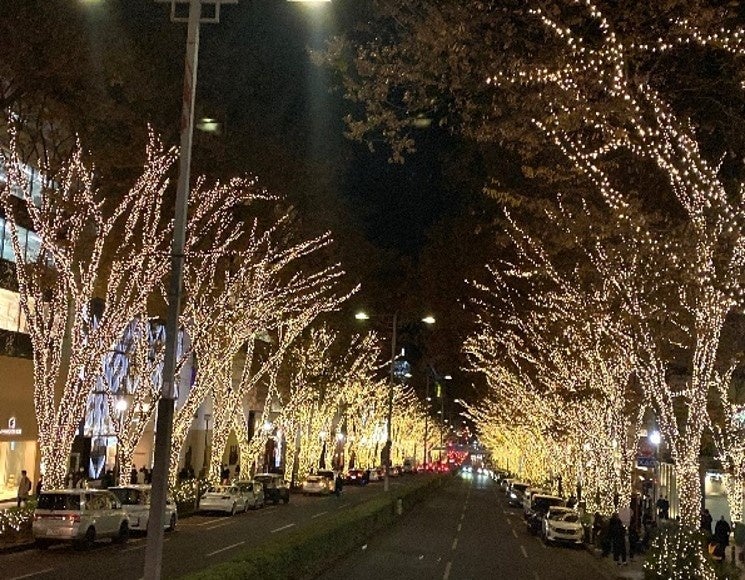 丸の内ビル前(集合・受付)18:00出発…<ディナーコースを堪能しながら車窓観光>→丸の内仲通りイルミネーション→国会議事堂→国立競技場→原宿→表参道イルミネーション→六本木ヒルズ→