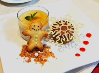 ジンジャープランマンジェのクリスマス限定のデザートプレートが付いた、本格的なクリスマス