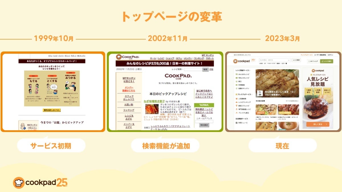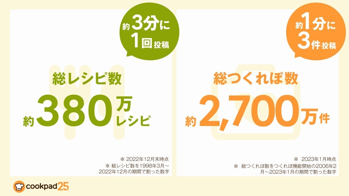 - 1998年3月にスタートした料理レシピ投稿・検索サービス「クックパッド」は、2023年3月で25周年を迎えた