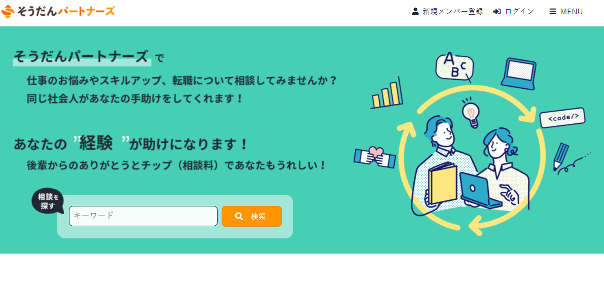 悩める社会人を先輩社会人が助ける悩み相談マッチングプラットフォーム「そうだんパートナーズ」