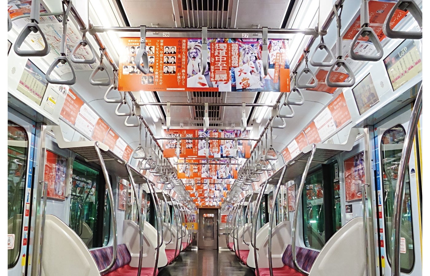 2026年5月3日(日・祝)にTHEATER MILANO-Zaで開幕する「歌舞伎町大歌舞伎 三代猿之助四十八撰の内『獨道中五十三驛(ひとりたびごじゅうさんつぎ)』」の上演を記念し、4月7日(火)から東横線1編成を本公演の広告でジャックして運行。市川中車演じる化け猫“猫の怪”と、市川團子演じる“丹波与八郎”のビジュアルが車内を埋め尽くします。