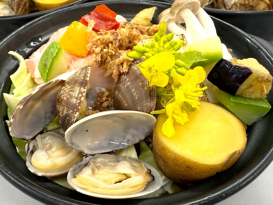 通常の海鮮バイキングに、今回のフェアーとして”蒸し焼きメニュー”などもご用意しました。旬の食材を鍋に入れその場で蒸しあげてお召し上がりください。他にも、旬の食材を使ったピッツア・パスタなどのイタリアンメニューも揃います。季節を感じられる旬メニューをぜひお楽しみください。