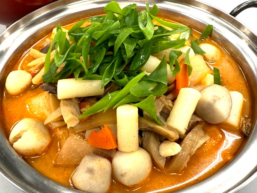 豚肉、大根、人参、ごぼう、里芋などを入れた具沢山の豚汁を韓国風スンドゥブ仕立てにアレンジ。味噌のコクとスンドゥブのピリ辛さが体を温めます。もちもちのトッポギとサイコロ状の絹豆腐が食べ応えをプラス。