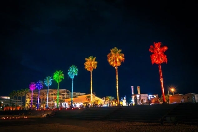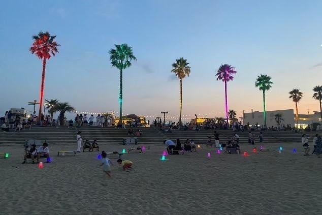 本企画は、同公園のシンボルであるヤシの木をオーロラカラーにライトアップし、夜のビーチを色鮮やかに彩ります。ライトアップの他にも日本センチュリー交響楽団によるビーチでの生演奏会や、フードトラック・ナイトマーケット・ワークショップが登場する「海辺の夜市」、お子様に大人気のこども縁日など、様々なラインナップで夏の夜を盛り上げます。カラフルにライトアップされたビーチを楽しめるのはこの期間だけ!ご家族やお友達と一緒にSENNAN LONG PARKで素敵な夜をお過ごしください。