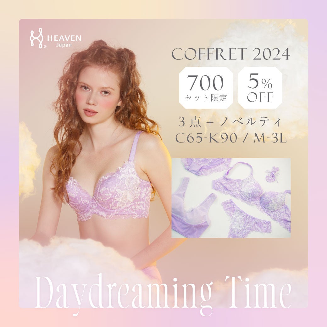 今回のコフレセットは「Daydreaming Time」をコンセプトに掲げ、ふわふわと夢の中にいるような高揚感に包まれる感覚をイメージ。HEAVEN Japanの下着は着けるだけでなりたい体形を叶え、自己肯定感を高めてくれるもの。そんな女性を増やしたいという想いから企画いたしました。