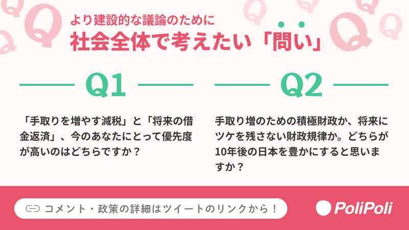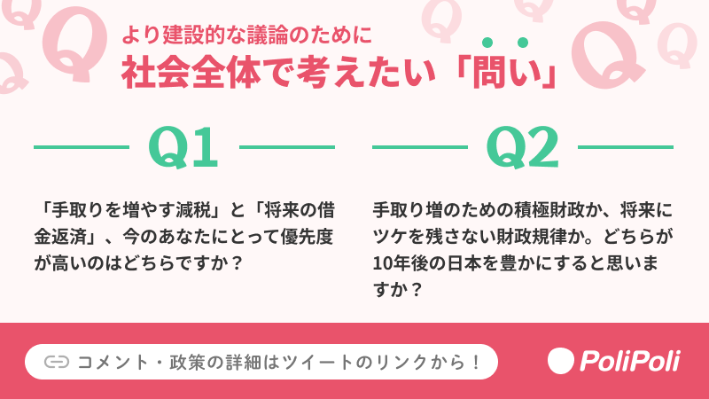 ※ この意見募集は特定の政治家・政党からの発信ではなく、政策議論を深める目的で『PoliPoli』運営事務局が実施するものです。