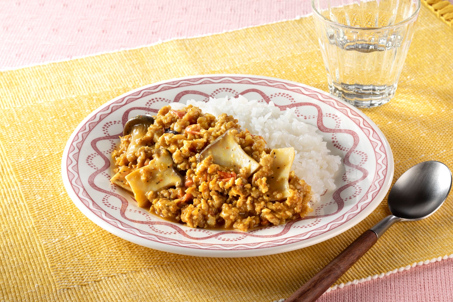 ・印度カリー子さん監修 「レンジで作る鶏ひき肉とエリンギのスパイスカレー」